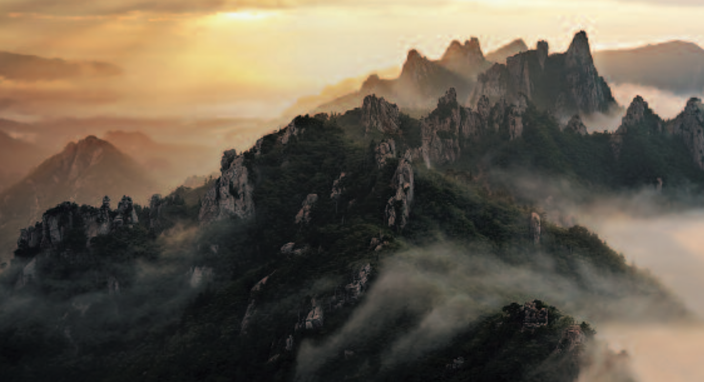 Du point de vue hauteur, Jirisan est la deuxième montagne de Corée. Mais, sa largeur et la douceur de sa forme lui ont valu le surnom de « Montagne Mère ». Les crêtes de Jirisan s’étendent sur 25 km et elle possède une vingtaine de sommets dépassant les 1500 mètres La vue sur ces montagnes enveloppées de nuages est vraiment splendide. Le pic le plus élevé de Jirisan culmine à 1915 mètres.