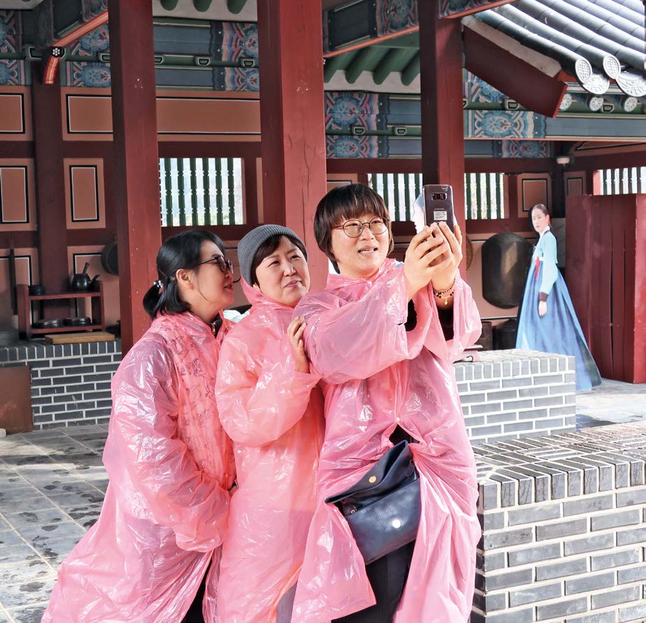 Les silhouettes des héros des grands dramas tournés au Dae Jang Geum Park jalonnent le site. Ils hantent fans et visiteuses qui se selfient avec eux et dans l’environnement de leurs exploits.