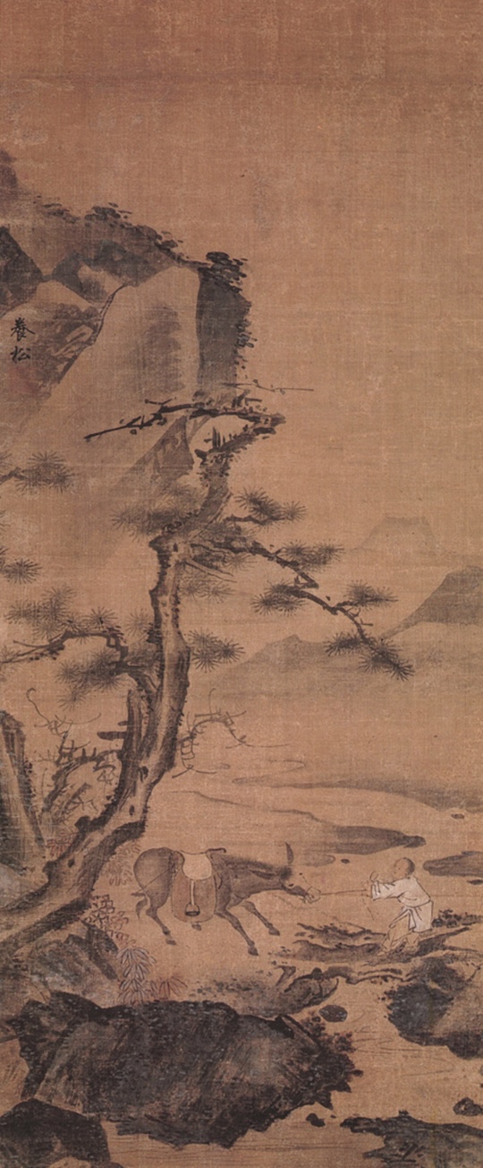 (fig. 3) Kim Si, Un enfant tirant un âne, fin 16e siècle, 11 cm x 46 cm, trésor n° 783, Musée Leeum, Séoul, Corée du Sud