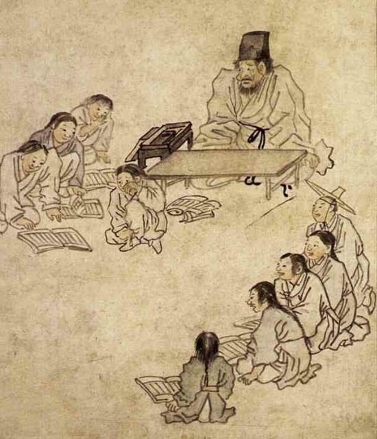 Avec la fondation du nouvel État de Joseon (1392-1910) par Yi Seong-gye, le bouddhisme, qui avait longtemps régné sur la péninsule coréenne, laisse la place à une nouvelle idéologie, le néo-confucianisme, prônant l’éthique dans la société. La classe dirigeante était alors issue des lettrés néo-confucéens nommés yangban qui consacraient leur vie à l’étude des classiques chinois et servaient comme fonctionnaires civils. Ces lettrés pratiquaient conjointement la poésie, la calligraphie et la peinture pour leurs loisirs, ces trois disciplines se fondant dans un même art du pinceau.