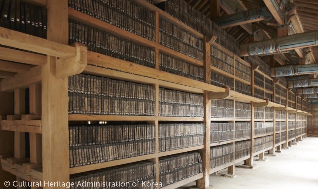 (fig. 2) Le canon de La grande corbeille conservé dans les bâtiments du Janggyeongpanjeon au temple Haeinsa près de Daegu, Corée du Sud.