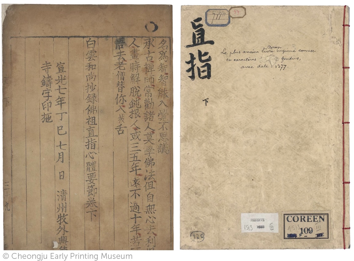 (fig. 3) Le Jikji imprimé en 1377 à Cheongju, Corée du Sud et conservé à la BnF, Paris.