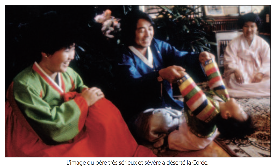 Nous sommes dans un supermarché en Corée. Une femme fait ses courses avec Kyung-min, son petit garçon qui, à vue d’oeil, a trois ou quatre ans. L’enfant va et vient dans les rayons où s’arrête sa maman. Il semble très à l’aise. Sa mère lui adresse de temps en temps un manjijima (Ne touche pas !) mais le ton n’a rien d’une mise en garde. Cela sonne plutôt comme un mot doux, quelque chose du genre « Tu sais, mon chéri, ces choses-là on ne doit pas les toucher » et le résultat est peu probant. L’enfant continue son manège, levant par moments les yeux vers sa mère et, jugeant au nunch’i (au regard) sa marge de manoeuvre. Le papa se trouve là mais il n’intervient pas parce que, contrairement aux pères français et à ce que l’on peut imaginer, les papas coréens ne représentent pas vraiment l’autorité. Ils sont souvent les premiers à céder face aux demandes des enfants. Argumenter n’étant pas dans la culture du pays ni dans les priorités de l’éducation, on laisse faire en se disant que tout rentrera dans l’ordre avec le temps.