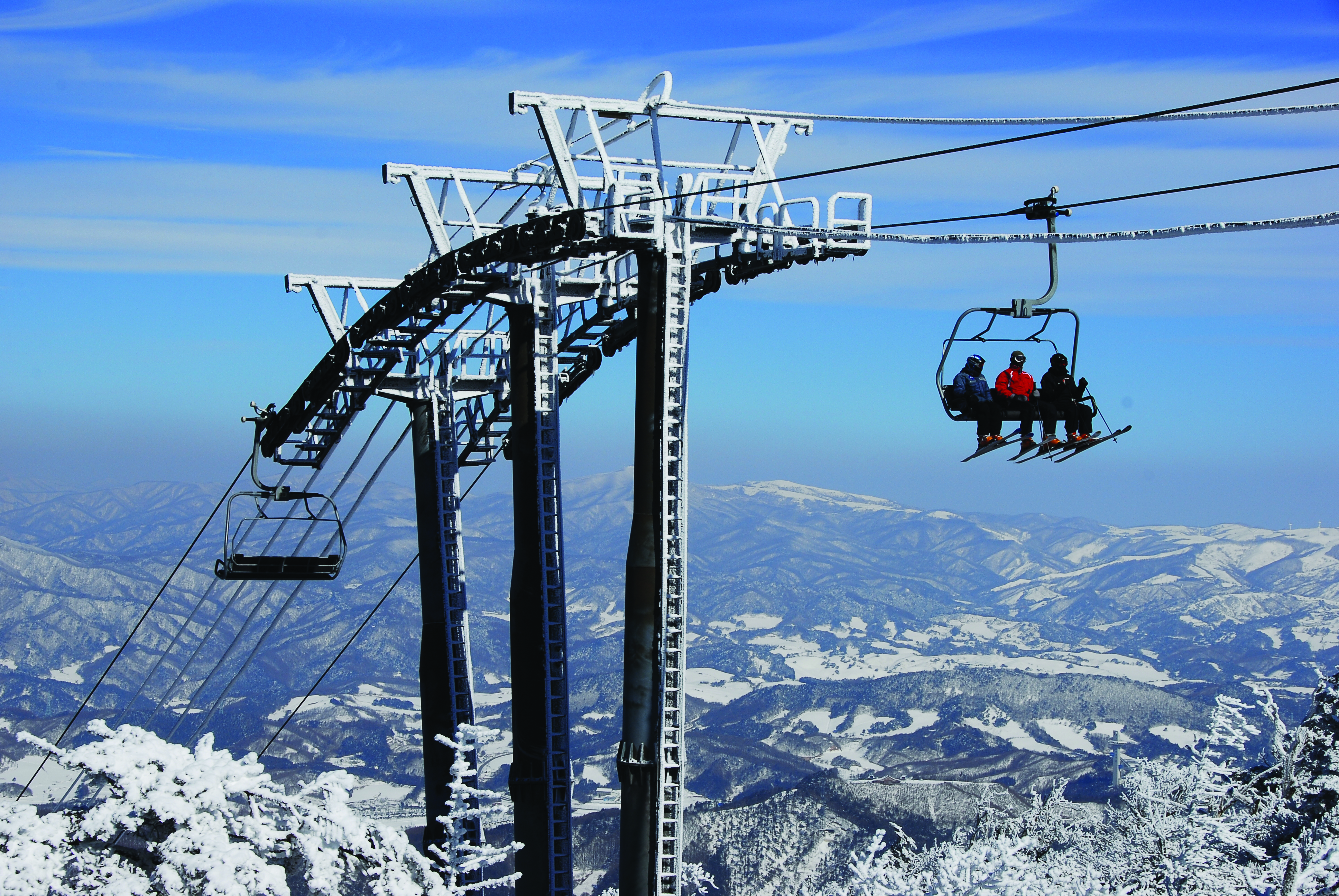 Remontées mécaniques d’une station de la région de Pyeongchang, en plein développement touristique.