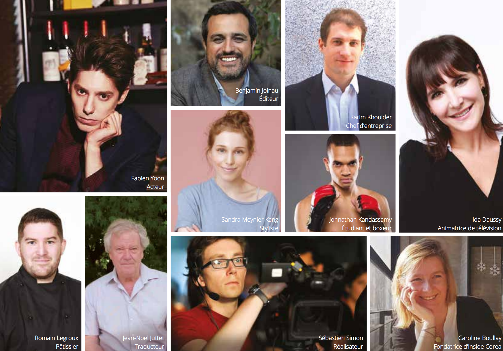 Et il y a aussi tous ces « anciens » Français, installés depuis plus de dix ans en Corée, qui sont restés par passion du pays et font partie du paysage coréen : Ida Daussy (animatrice de télévision, professeur et conférencière), Benjamin Joinau (professeur, auteur et éditeur), Maryse Bourdin (professeur, traductrice), Philippe Thireau (chasseur de têtes), David Pierre Jalicon (architecte), Pierre Couque (industriel), Philippe Lee (avocat), père Blot (religieux) et beaucoup d’autres encore...