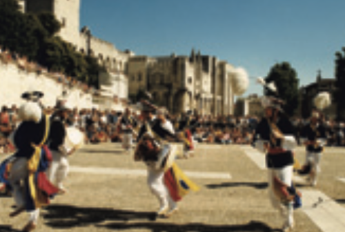 Parade de la troupe Samulnori Hanulim de KIM Duk-soo, sur le parvis du Palais des Papes