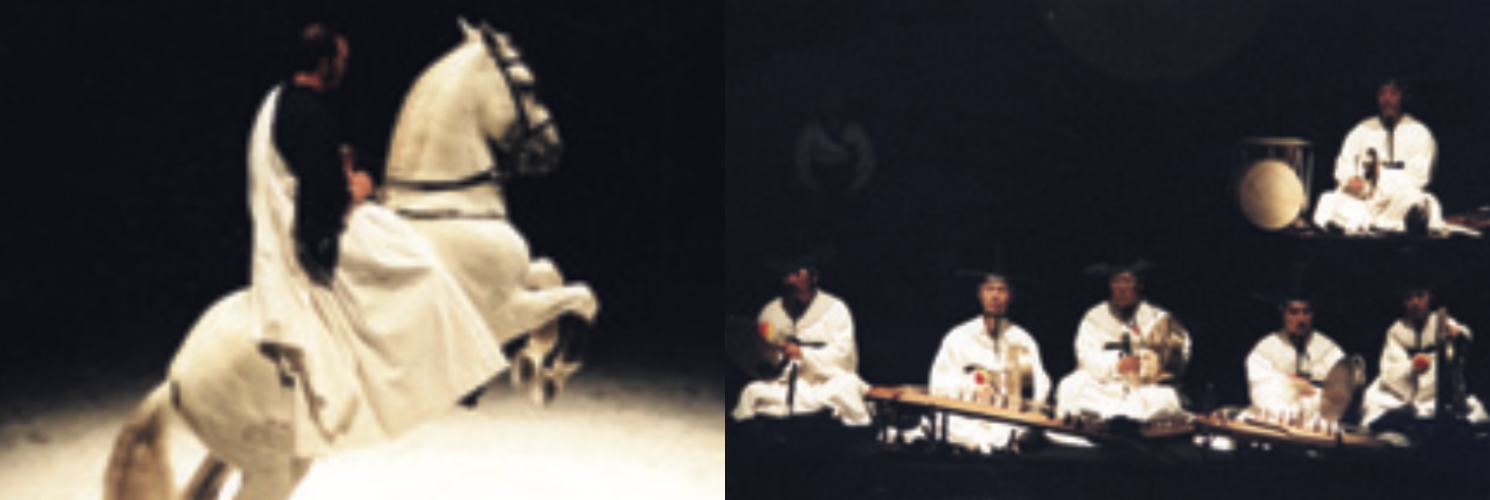 ■ Le spectacle équestre de Bartabas, « Éclipse », intégrant musique traditionnelle coréenne et pansori. Ce fut un énorme succès à la fois en France (Festival d’Avignon 1997, Aubervilliers) et à l’étranger (Allemagne, Autriche, Suisse, Belgique, Etats- Unis). Le spectacle fera l’objet, de 1997 à 1999, de 376 représentations permettant à 432 000 spectateurs occidentaux de découvrir la musique coréenne.